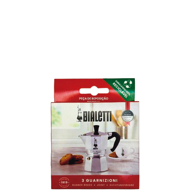 Mantenha sua cafeteira Moka Bialetti sempre funcionando perfeitamente com este conjunto de borrachas de vedação especialmente desenvolvidas para modelos de 3 a 4 xícaras. Cada kit contém 3 borrachas de alta qualidade, garantindo a vedação ideal para o preparo do seu café, evitando vazamentos.