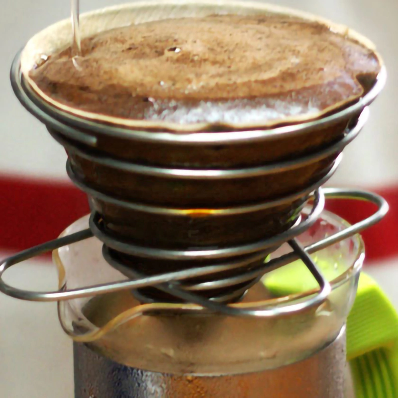 O Suporte Para Filtro em Arame Tipo Mola oferece uma abordagem minimalista e funcional para o seu café coado. Feito de liga metálica, este dripper exclusivo permite uma visão desimpedida da extração do café, garantindo que você controle a cor e o fluxo com precisão. Seu design de mola é leve, durável e se adapta a diferentes tamanhos de xícaras e jarras, sendo ideal para quem valoriza a simplicidade e a pureza do método pour-over.
